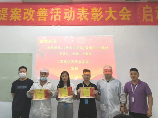 為表彰員工對公司發展提出優秀提案,同時為充分調動員工主觀能動性,把提案改善作為持之以恒的工作來推進,讓更多的員工能夠參與進來,2022年6月21日,華南工廠召開了五月提案改善表彰大會。公司對本次提案獲得者頒發了榮譽證書和獎金。