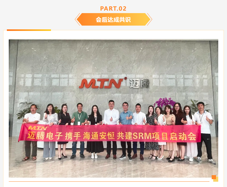 邁騰電子SRM系統項目的啟動,是企業主動擁抱數字化浪潮的積極實踐。隨著項目的推進與落地,必將為企業供應鏈管理注入新動能,助力邁騰電子在激烈的市場競爭中實現高質量發展,開啟供應鏈管理數字化的嶄新篇章。