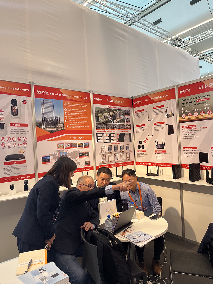 展位人頭攢動,參觀者紛紛駐足,親身體驗公司帶來的創新技術。Wi-Fi 6/7綜合產品解決方案以其卓越的性能和廣泛的應用場景成為展會亮點之一,針對高密度場景進行優化,通過智能AP部署、信道優化和無縫漫游技術,為用戶,企業辦公、智能酒店等場景應用提供穩定、高速的無線網絡覆蓋,滿足各種無線覆蓋領域的需求。