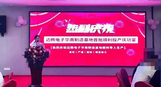 祝賀邁騰電子華南制造基地首批順利投產