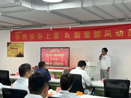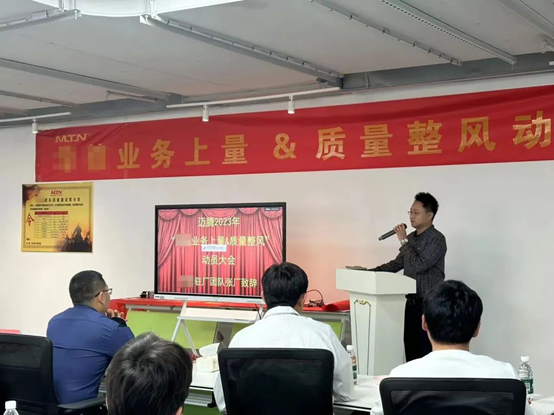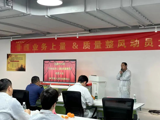 質量推進組成員,通過產品質量知識、活動說明、質量之思三個方面進行“質量季”主題活動宣講。動員邁騰電子全員參與,全員行動,把好每一道質量關。