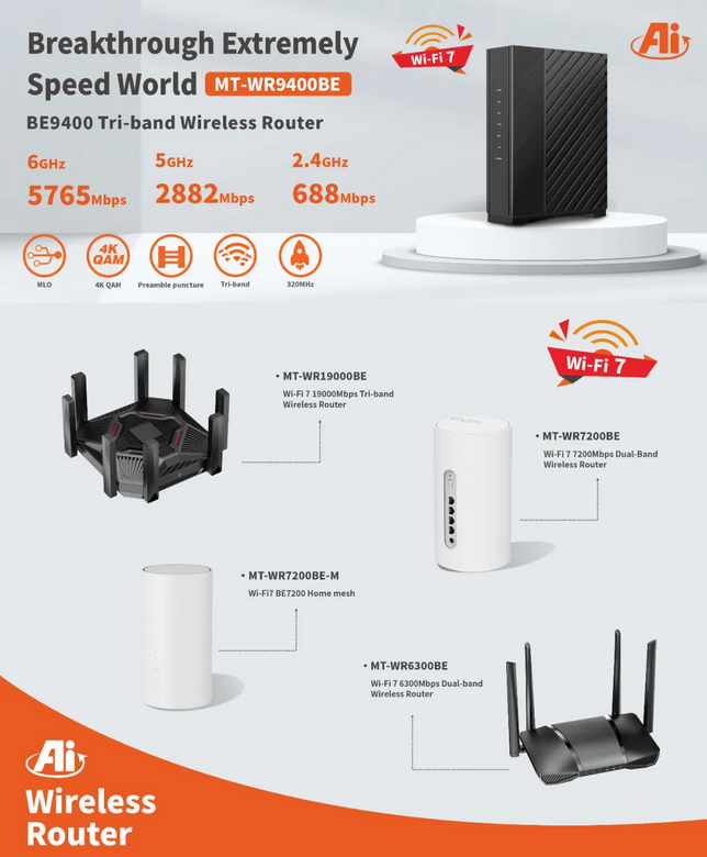 搭載全新一代Wi-Fi7,加速未來連接,深度開發Wi-Fi融合技術,拓寬應用邊界,構建智慧家庭。