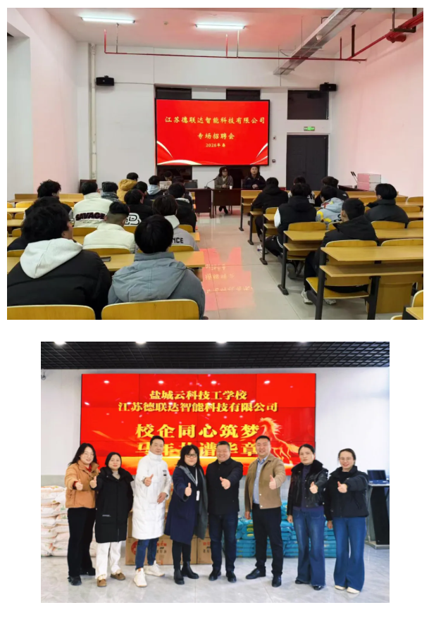 春潮涌動啟新程,校企攜手向未來。2026馬年新篇開啟之際,江蘇德聯達智能科技有限公司(華東工廠)與江蘇鹽城云科技工學校的合作再結碩果——一場深化協同育人的專場交流會溫情落幕,一場精準對接就業的專場招聘會圓滿舉辦。