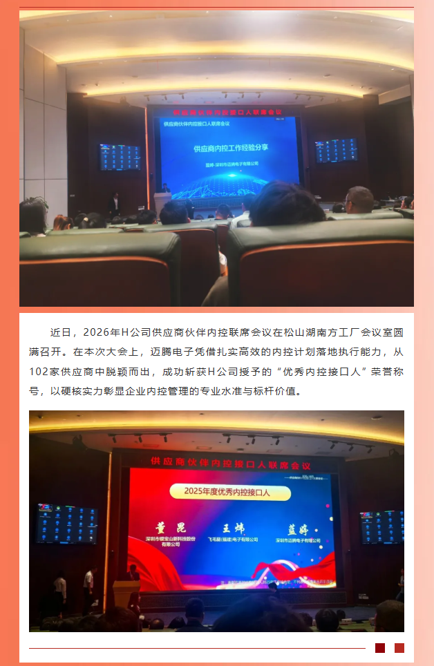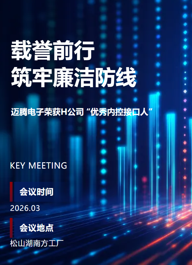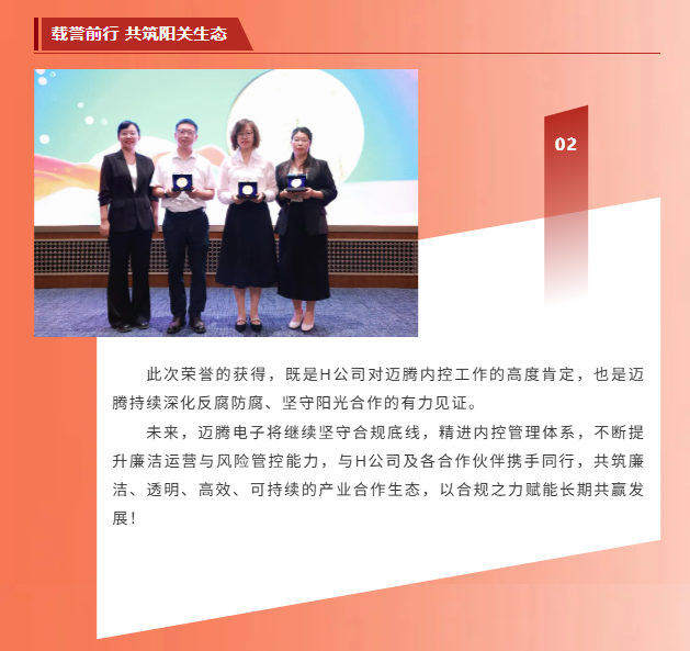 載譽前行,筑牢廉潔防線|邁騰電子榮獲H公司“優秀內控接口人”